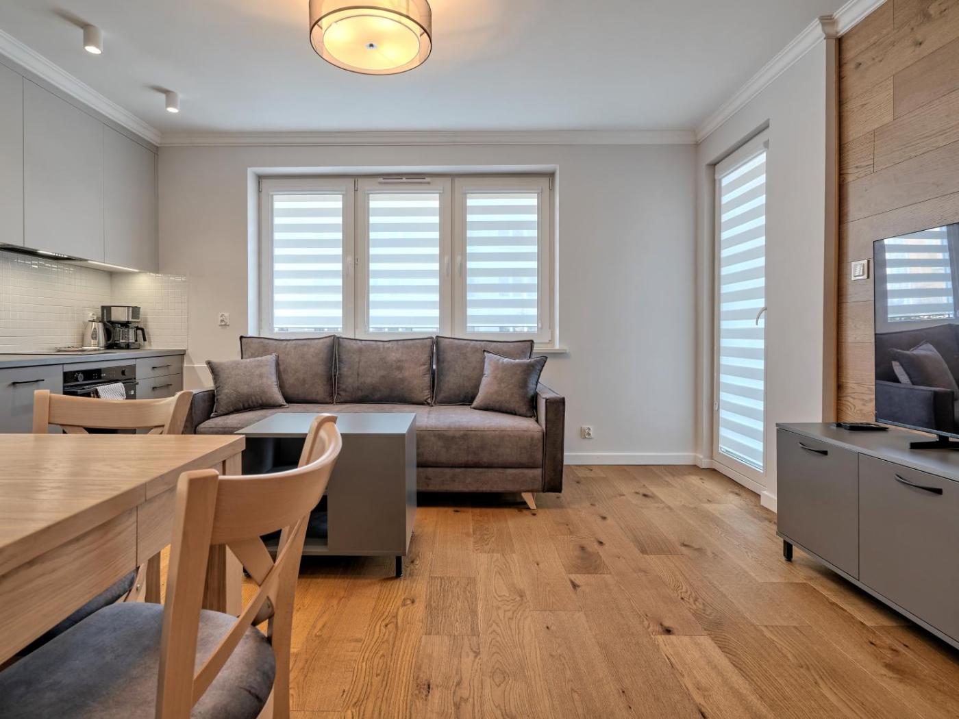 Apartament z 1 sypialnią. Boasting a private entrance, this air-conditioned apartment comes with 1 living room, 1 separate bedroom and 1 bathroom with a shower and a hairdryer. In the well-fitted kitchen, guests will find a stovetop, a refrigerator, a dishwasher and kitchenware. This apartment has a washing machine, a tea and coffee maker, a flat-screen TV with satellite channels and a balcony. The unit has 2 beds. Apartament - 4 osobowy. Powierzchnia pokoju ok.: 34 mkw.