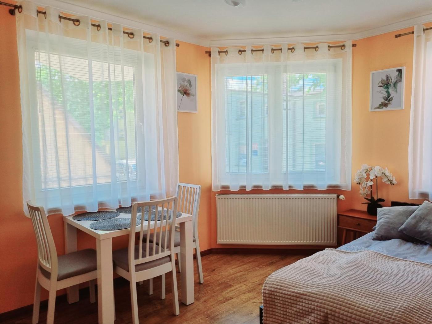 Apartament – parter. Featuring a private entrance, this apartment is comprised of 1 living room, 1 separate bedroom and 1 bathroom with a shower and a hairdryer. Guests can make meals in the kitchen that comes with a stovetop, a refrigerator, a dishwasher and kitchenware. The apartment offers a TV with cable channels, a tea and coffee maker, a wardrobe, heating as well as a quiet street view. The unit offers 3 beds. Apartament - 4 osobowy. Powierzchnia pokoju ok.: 48 mkw.