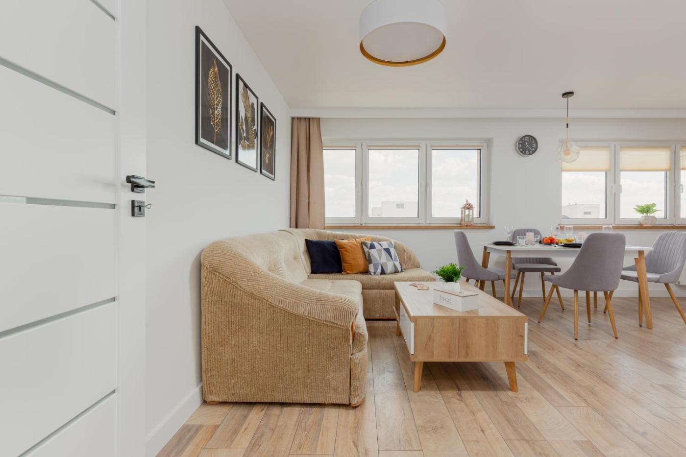 Apartament z 2 sypialniami. This spacious apartment consists of 1 living room, 2 separate bedrooms and 2 bathrooms with a shower and free toiletries. In the well-fitted kitchen, guests will find a stovetop, a refrigerator, a dishwasher and kitchenware. The air-conditioned apartment provides a flat-screen TV with cable channels, a washing machine, a tea and coffee maker, a seating area as well as city views. The unit offers 3 beds. Apartament - 7 osobowy. Powierzchnia pokoju ok.: 62 mkw.